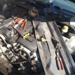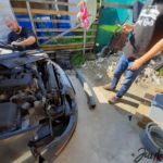 S ohledem na počasí – mimochodem, máme krásný začátek září – konečně padla volba na první sobotu devátého měsíce. Viktor přijel hned ráno a první věc, kterou jsme museli vyřešit, byl stahovák na řemenici. Měli jsme štěstí – Auto Kelly, které je nejblíže, má otevřeno i v sobotu a stahovák dodalo. Je sice velký, vhodný na náboje kol, ale s ohledem na to, že se v každém případě bude rozebírat předek auta, práci určitě zvládne. A do budoucna se hodí. 🙂 Po návratu jsem přeparkoval auta, najel s Viktorovým 300M do dvora – a jdeme na to.