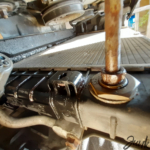 Začalo nám docházet denní světlo, tak jsme sebou hodili, světlomet na místo, uchytit vrutem do nepohledové části zezadu (náhradní světlo též mělo ulomený držák), přehodit žárovky… Když jsme začali vracet nárazník na místo, již se šeřilo a poslední šroubky a matky jsme dávali na místo za doprovodu osvětlení z baterky. 😀 Trochu Junk Works, člověk se toho nesmí bát. A popravdě je to teď i slícováno lépe, než když Viktor přijel. Hlavní ale, že se zvládlo rozvody a chladič; bylo sice nutných pár úprav a předělávek, ale bez toho to na starších autech kolikrát ani nejde. Pokecali jsme u toho, ponadávali a posmáli se. Byl to moc fajn a zdárný den. Bohužel, nestihli jsme výměnu oleje, ale to je drobnost, kterou zvládne již snad každý. Viktor dle zprávy dojel domu v pořádku, a tak hodnotím, že se nám akce povedla. 🙂