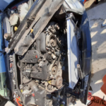 Zpět do motorového prostoru. Větráky šly snadno, světlomet také. Viktor povolil nárazník, demontovali jsme kryt rozvodů. Zbývá vyndat chladič – a z ničeho nic holendry s námi začínají konečně spolupracovat. Velké sikovky a vědomí, že máme pertlovačku, dělá své. 😅 Teď už by nic nemělo stát v cestě vyndání chladiče, jenže to by k němu nesměl být chladič klimatizace přišroubovaný vruty do podložek z opačné strany. Ach jo. Dali jsme hlavy dohromady a nakonec prostě vydali oba chladiče naráz – klimatizace byla i tak prázdná, někde uniká, a chladič už vypadal také hodně jetý, takže jsme se rozhodli ho vyřadit úplně. V tomto okamžiku před námi stálo 300M téměř kompletně bez předku. 😀