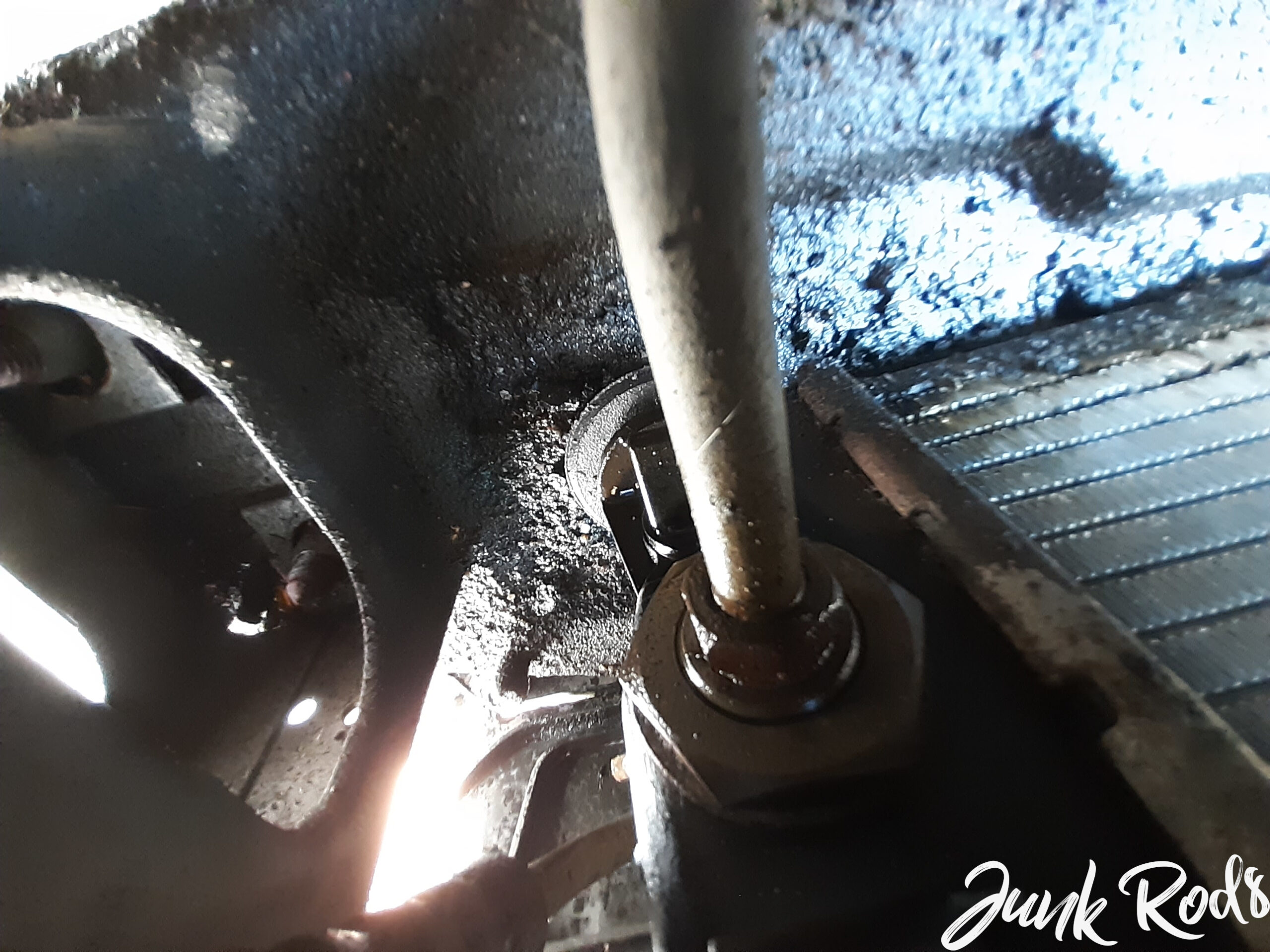 Začalo nám docházet denní světlo, tak jsme sebou hodili, světlomet na místo, uchytit vrutem do nepohledové části zezadu (náhradní světlo též mělo ulomený držák), přehodit žárovky… Když jsme začali vracet nárazník na místo, již se šeřilo a poslední šroubky a matky jsme dávali na místo za doprovodu osvětlení z baterky. 😀 Trochu Junk Works, člověk se toho nesmí bát. A popravdě je to teď i slícováno lépe, než když Viktor přijel. Hlavní ale, že se zvládlo rozvody a chladič; bylo sice nutných pár úprav a předělávek, ale bez toho to na starších autech kolikrát ani nejde. Pokecali jsme u toho, ponadávali a posmáli se. Byl to moc fajn a zdárný den. Bohužel, nestihli jsme výměnu oleje, ale to je drobnost, kterou zvládne již snad každý. Viktor dle zprávy dojel domu v pořádku, a tak hodnotím, že se nám akce povedla. 🙂